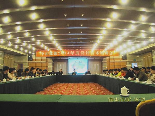 管理總部訊  11月5日至7日,“中裕能源2014年度設計技術培訓會”在漯河成功召開,集團副總裁黃飚先生、盧迎九先生、漯河公司總經理趙炳喜先生出席會議并發表了重要講話,管理總部、子公司設計技術人員以及施工單位相關人員共百余人參加了會議。
